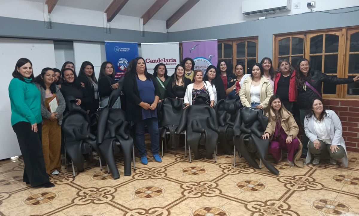 Las 23 socias de la Cooperativa Pesquera de Mujeres Bravas del Mar de Caldera, tendrán la oportunidad de fortalecer y diversificar su actividad económica, luego de aprobar con éxito el curso “Técnicas de confección y reparación de trajes de buceo”, iniciativa impulsada por Minera Candelaria a través de su Programa de Apoyo a la Pesca Artesanal Sustentable.