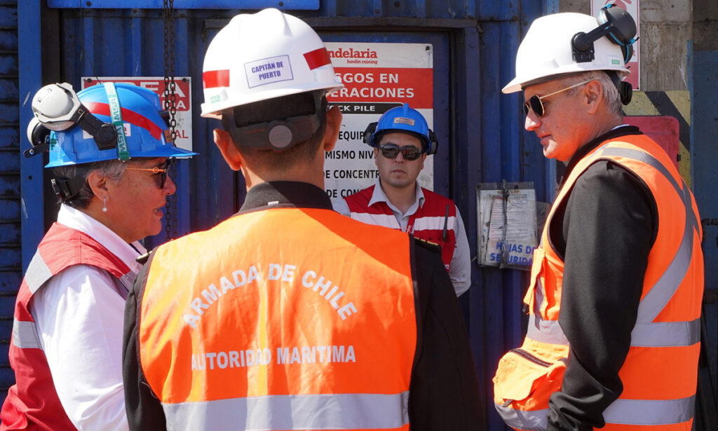 La autoridad marítima fue recibida y acompañada durante el recorrido por Ximena Matas, directora de Asuntos Corporativos y Relaciones Externas de Minera Candelaria; Marcia Soto, subgerenta de operaciones del Puerto y Planta Desalinizadora; y profesionales del equipo de trabajo de esa área.